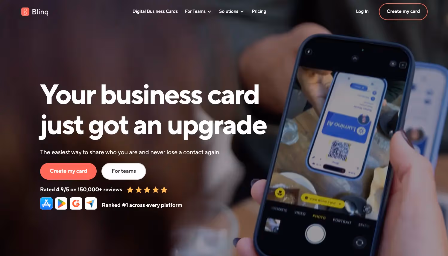 Blinq gives event organizing teams complete control over their professional presence while making team management effortless. Instead of coordinating physical card orders across staff members, you can onboard new team members in minutes and maintain consistent branding across every interaction. Blinq has a 4.9/5 star rating across 150,000+ reviews and holds the #1 rating on all platforms, including on G2 for their overall performance and ease of use.