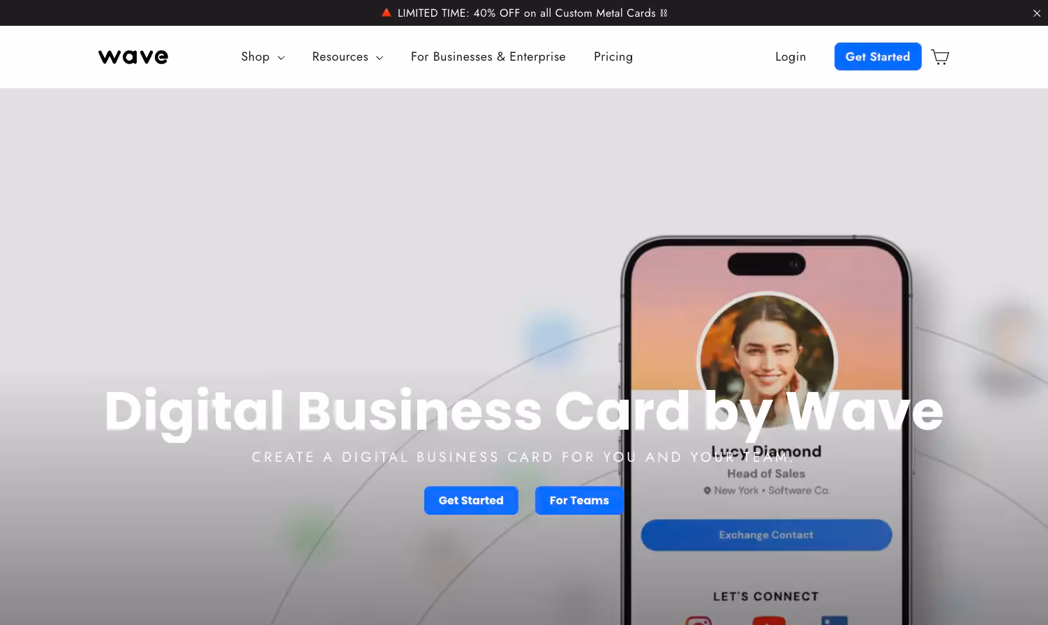 Wave provides straightforward digital business cards with basic team features suitable for small event organizations just getting started.